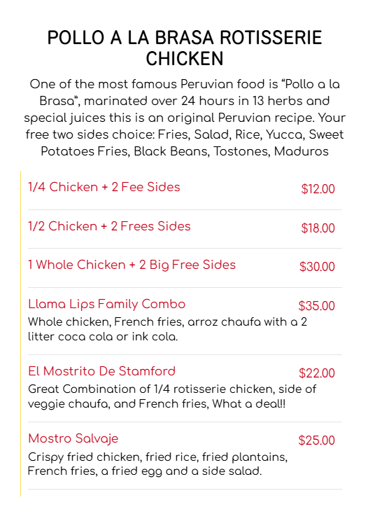 Enjoy the bold flavors of Peru from the comfort of your home with our easy online ordering. Whether you're in the mood for savory skewers, flavorful ceviche, or a refreshing pisco cocktail to-go, we've got you covered. Place your order today and let us handle the rest while you sit back and enjoy every bite.